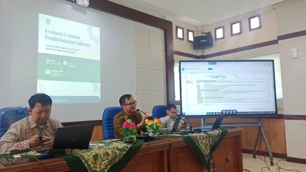Batusangkar Rabu, 11 Maret 2026, Fakultas Tarbiyah dan Ilmu Keguruan (FTIK) UIN Mahmud Yunus secara proaktif menyelenggarakan rapat dan diskusi krusial bertajuk Evaluasi Capaian Pembelajaran Lulusan (CPL). Acara ini menegaskan komitmen fakultas dalam memastikan urgensi, prioritas, relevansi dan kualitas pendidikan melalui implementasi kurikulum berbasis Outcome-Based Education (OBE) dan memperbarui sistem evaluasi pembelajaran.